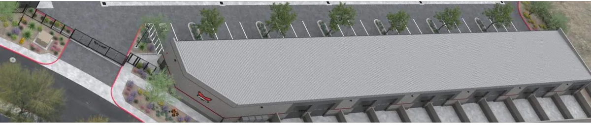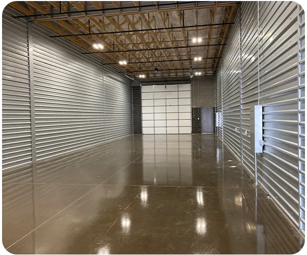 Dual 12'x14' overhead doors for pull through access and 18" clear height.